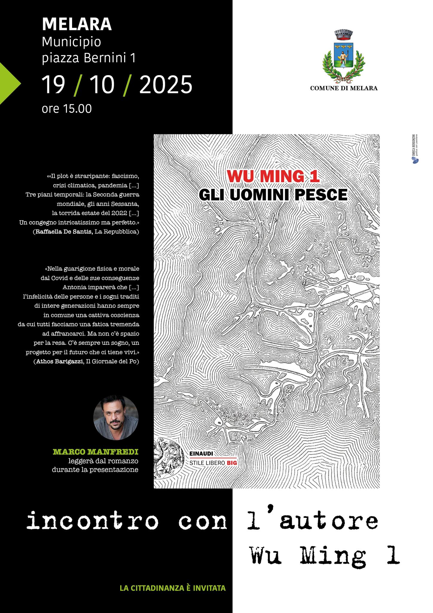 Domenica 19 ottobre alle 15.00 presso il Municipio di Melara, un imperdibile appuntamento con lo scrittore Wu Ming 1.