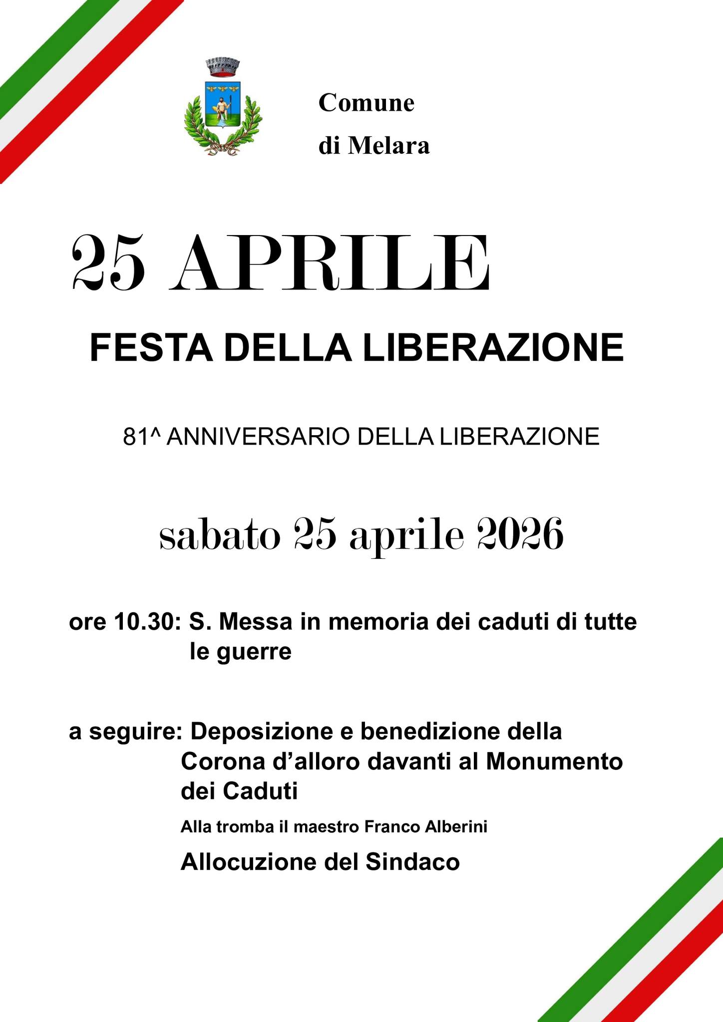 Si pubblica (vedere allegato) il programma delle celebrazioni per l'81^ anniversario della Liberazione, previste per sabato 25 aprile 2026.